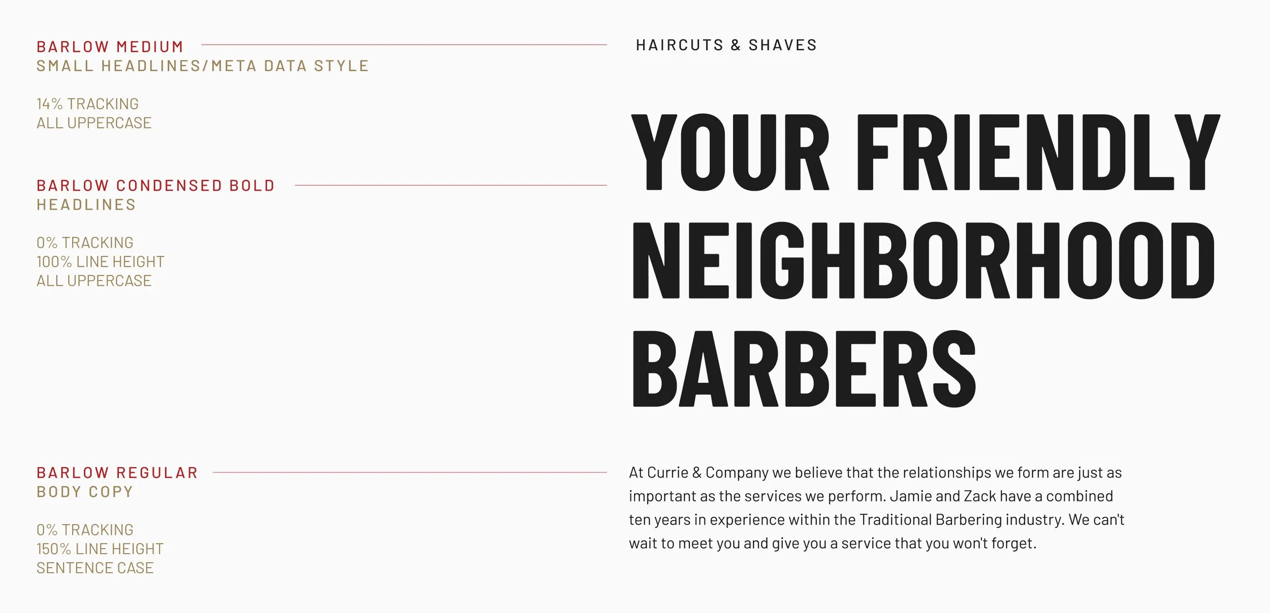 The chosen typeface for the logo is clear and legible while maintaining an organic and humanistic quality in it’s roundness and subtle imperfections. This is a nod to both the past and the fact that barbering is a craft performed by the human hand and each barber brings their own unique self to each relationship and each cut or shave.