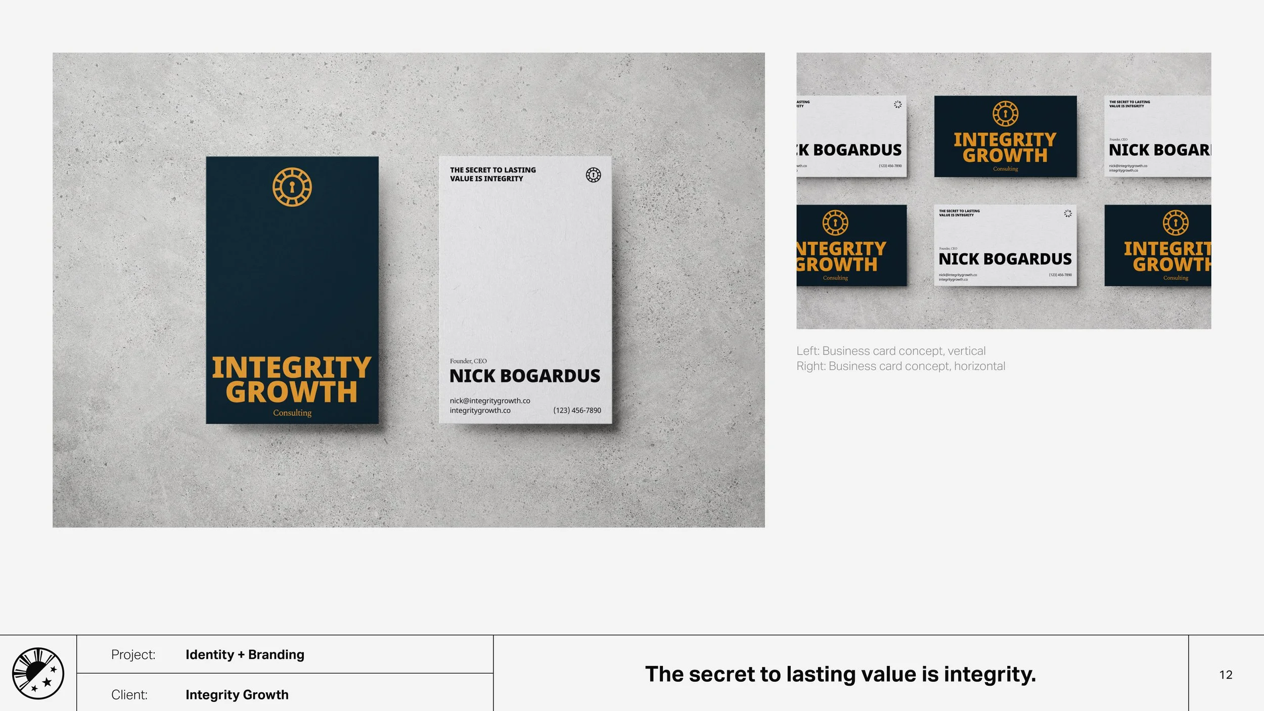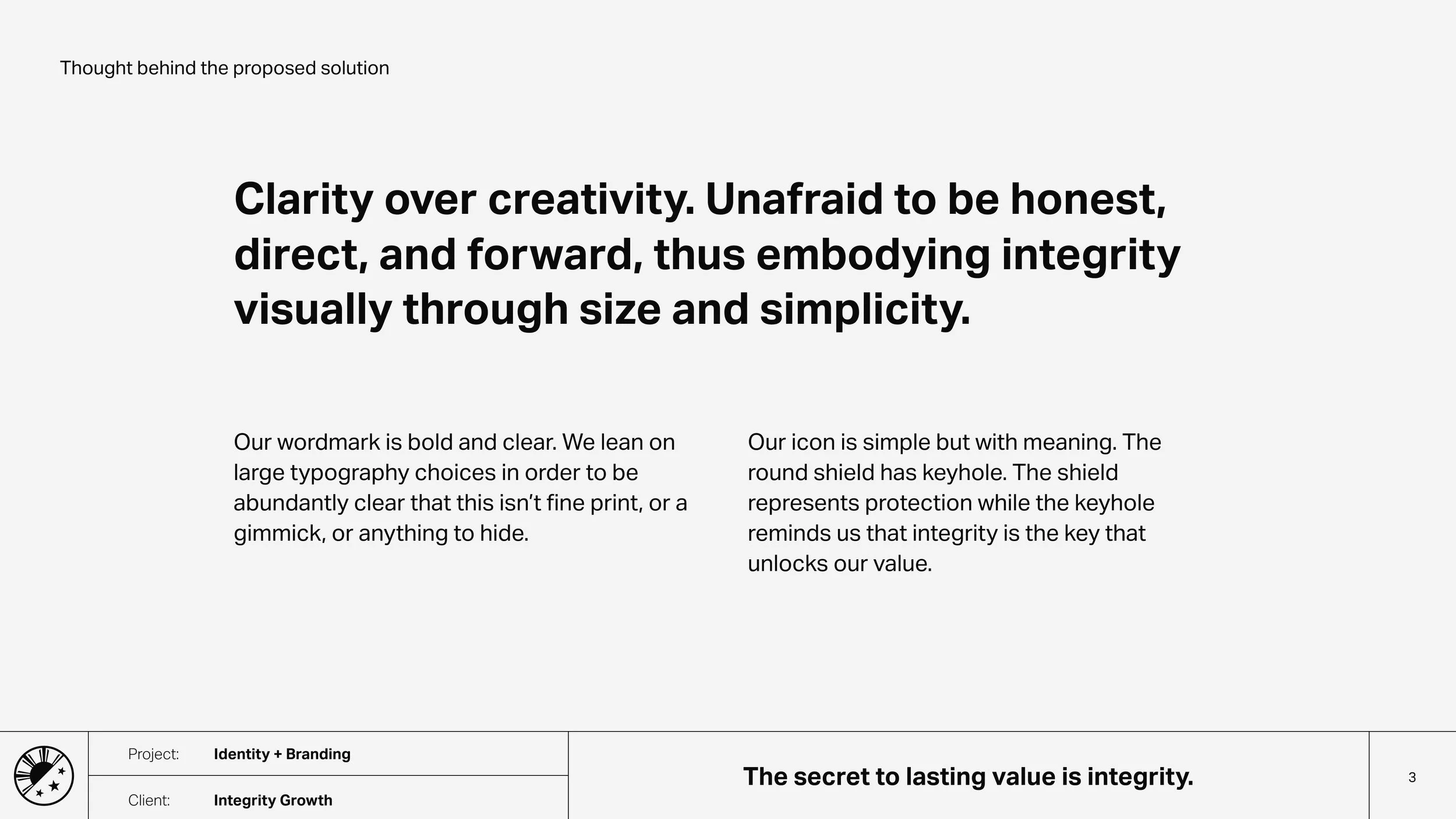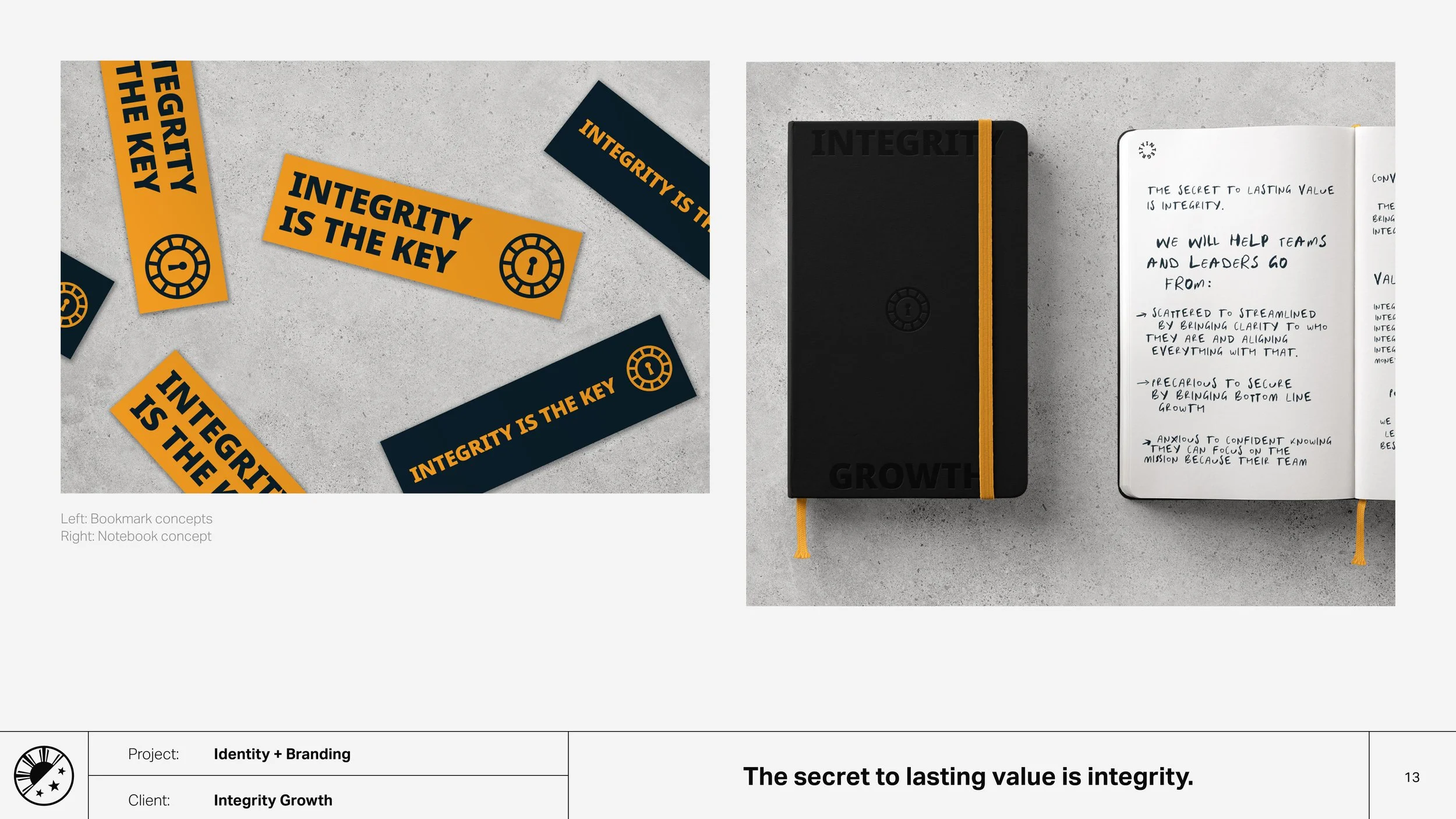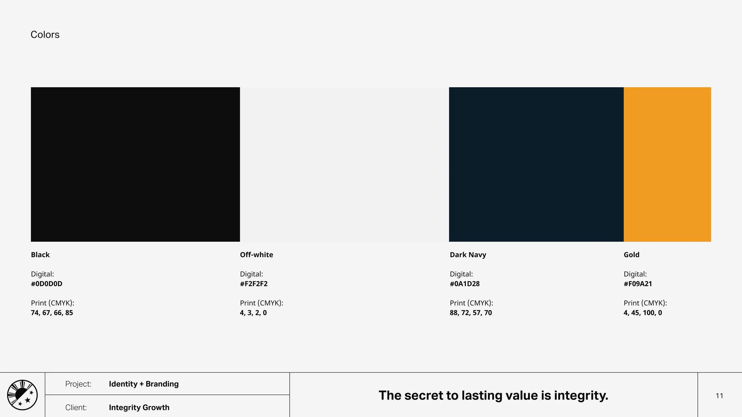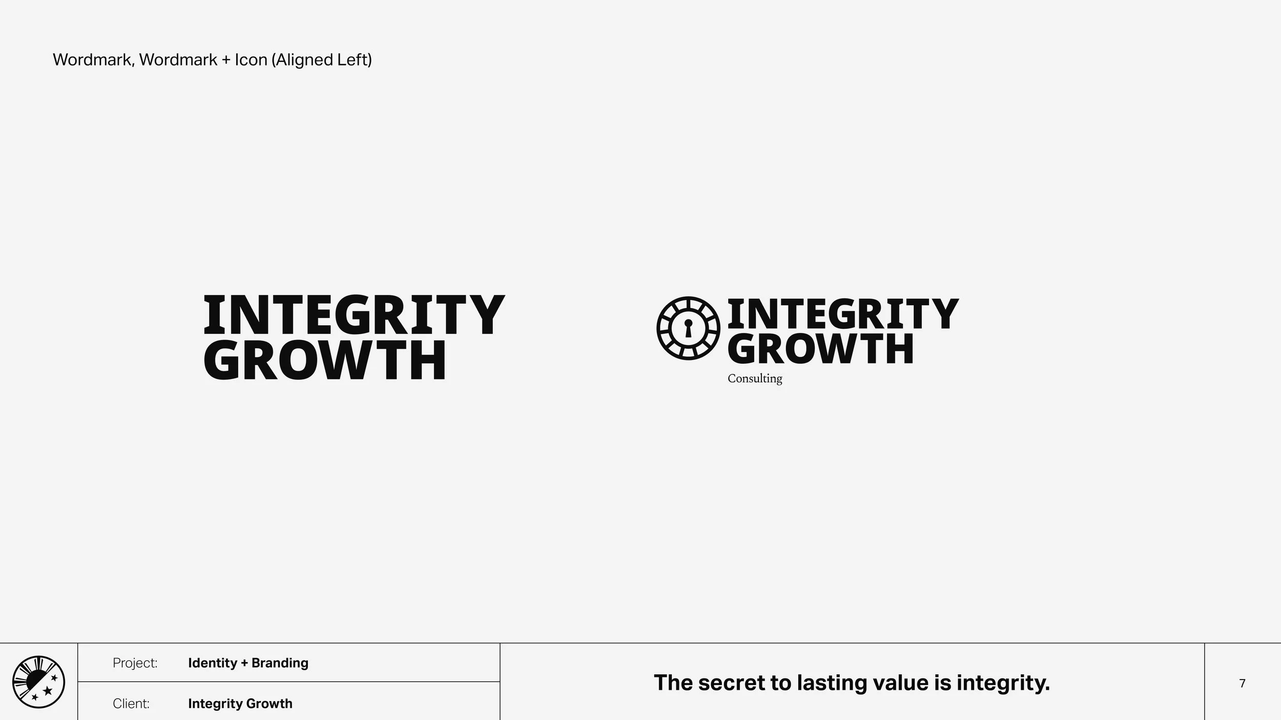 Integrity Growth believes that the secret to lasting value is integrity. As a new venture they are in need of a visual identity and branding that visually communicates that belief.