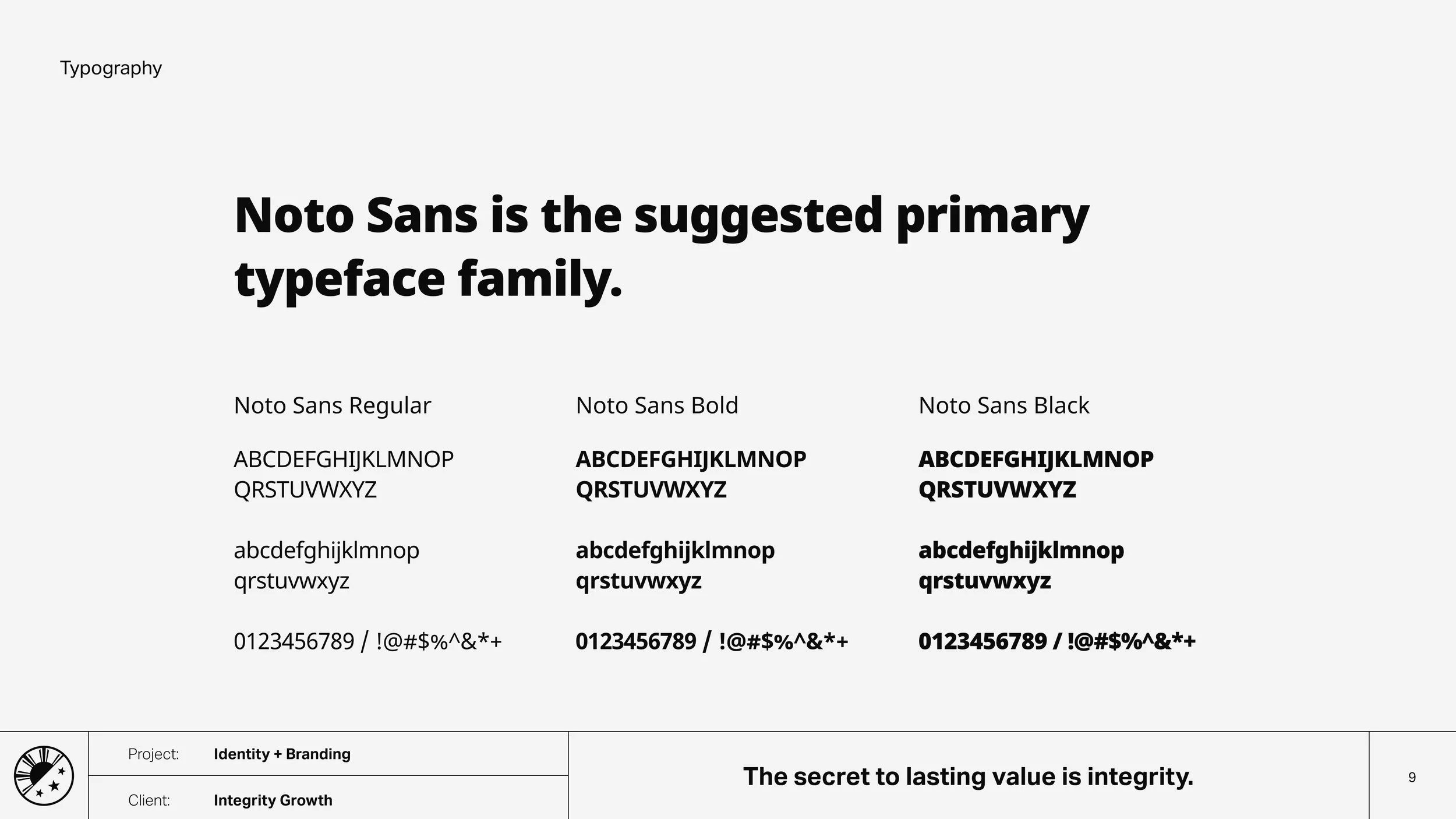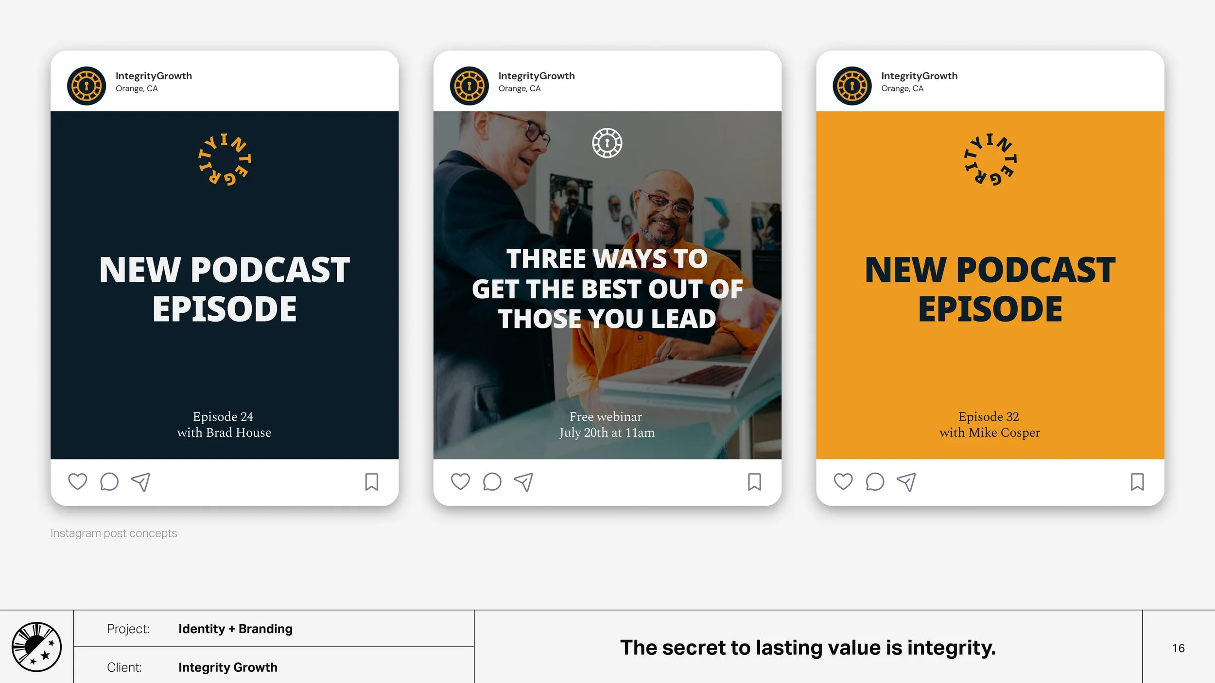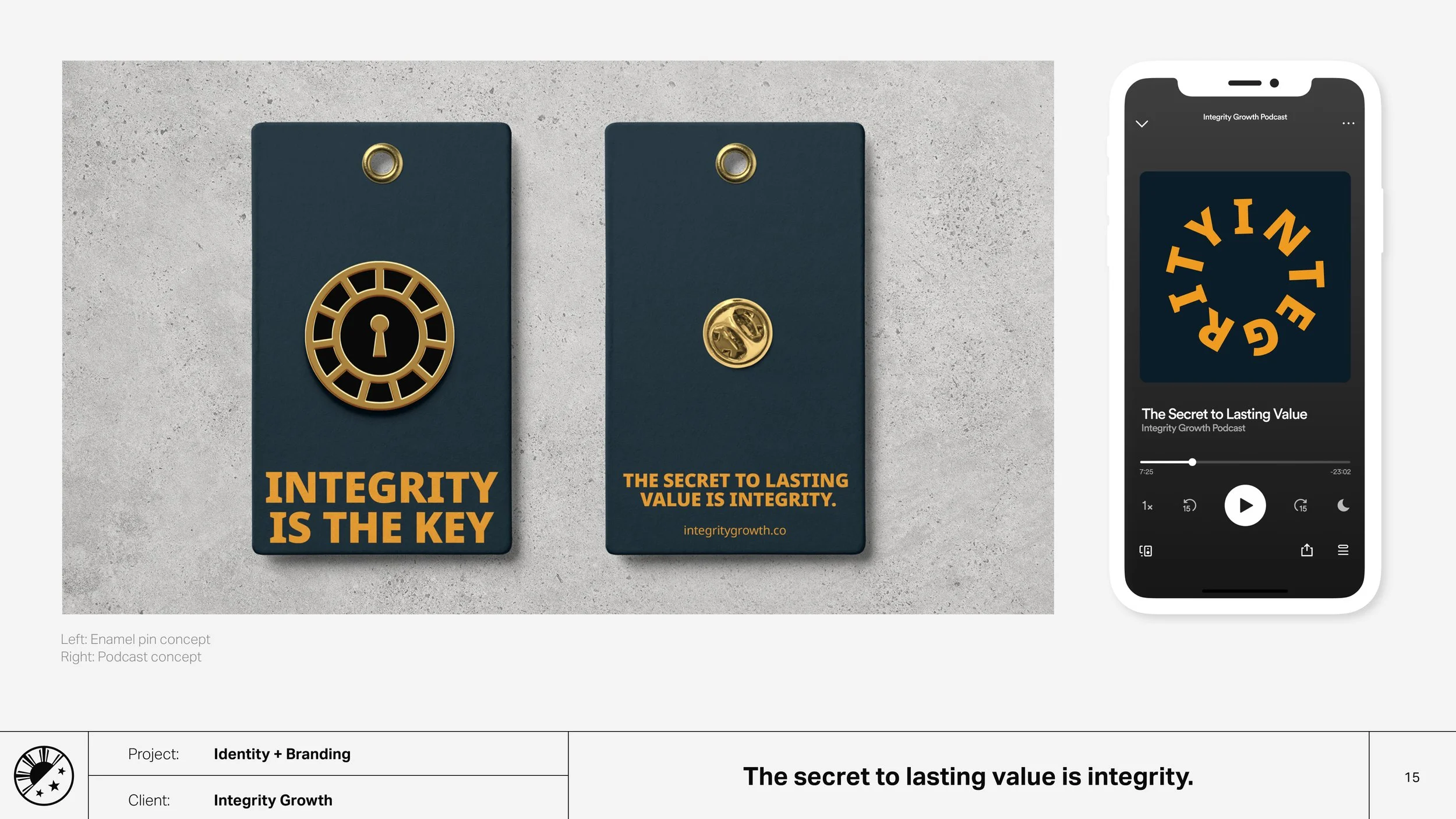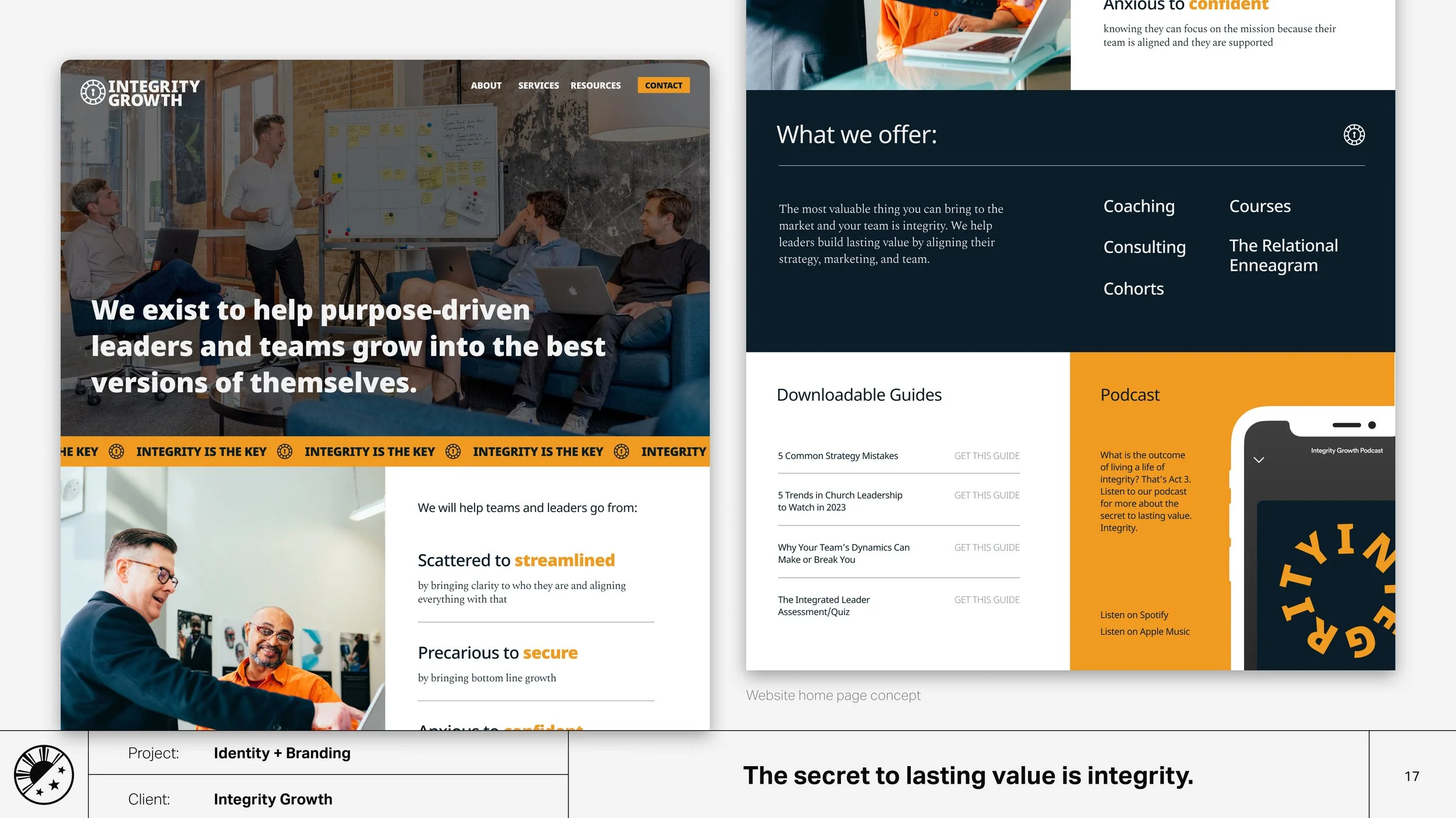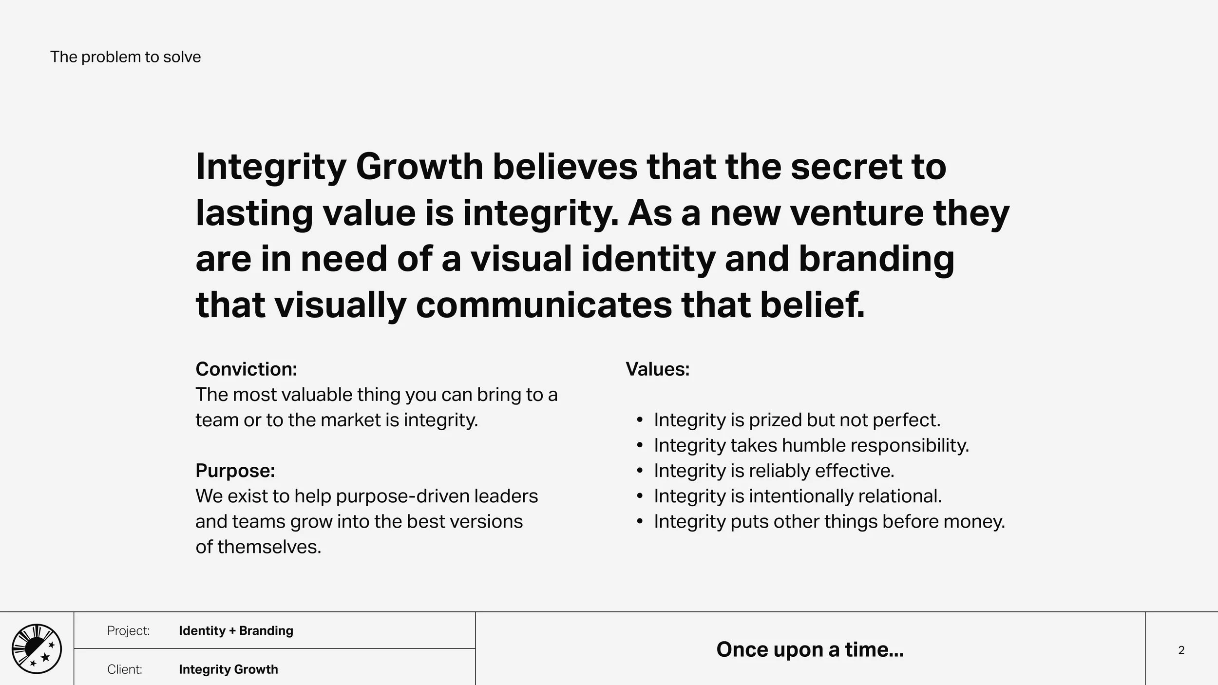 Integrity Growth believes that the secret to lasting value is integrity. As a new venture they are in need of a visual identity and branding that visually communicates that belief.