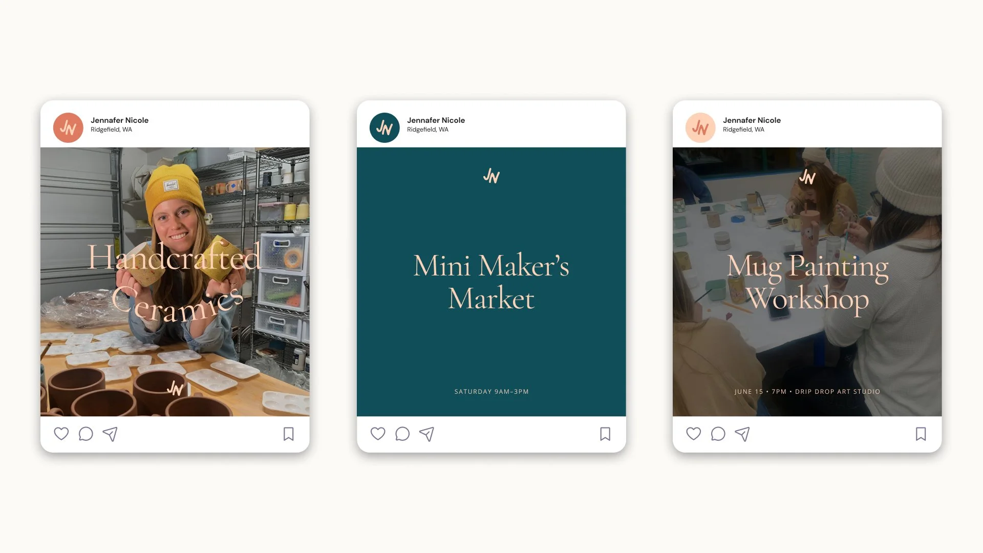 Jennafer Nicole Ceramics needed a visual identity to complement her craftsmanship. We wanted a level of expressiveness and character that communicates the handmade nature of all her creations, while simultaneously being clear to avoid any possible confursion.