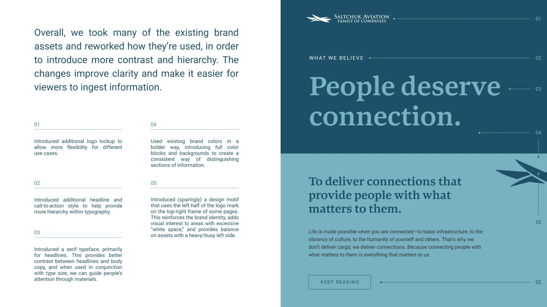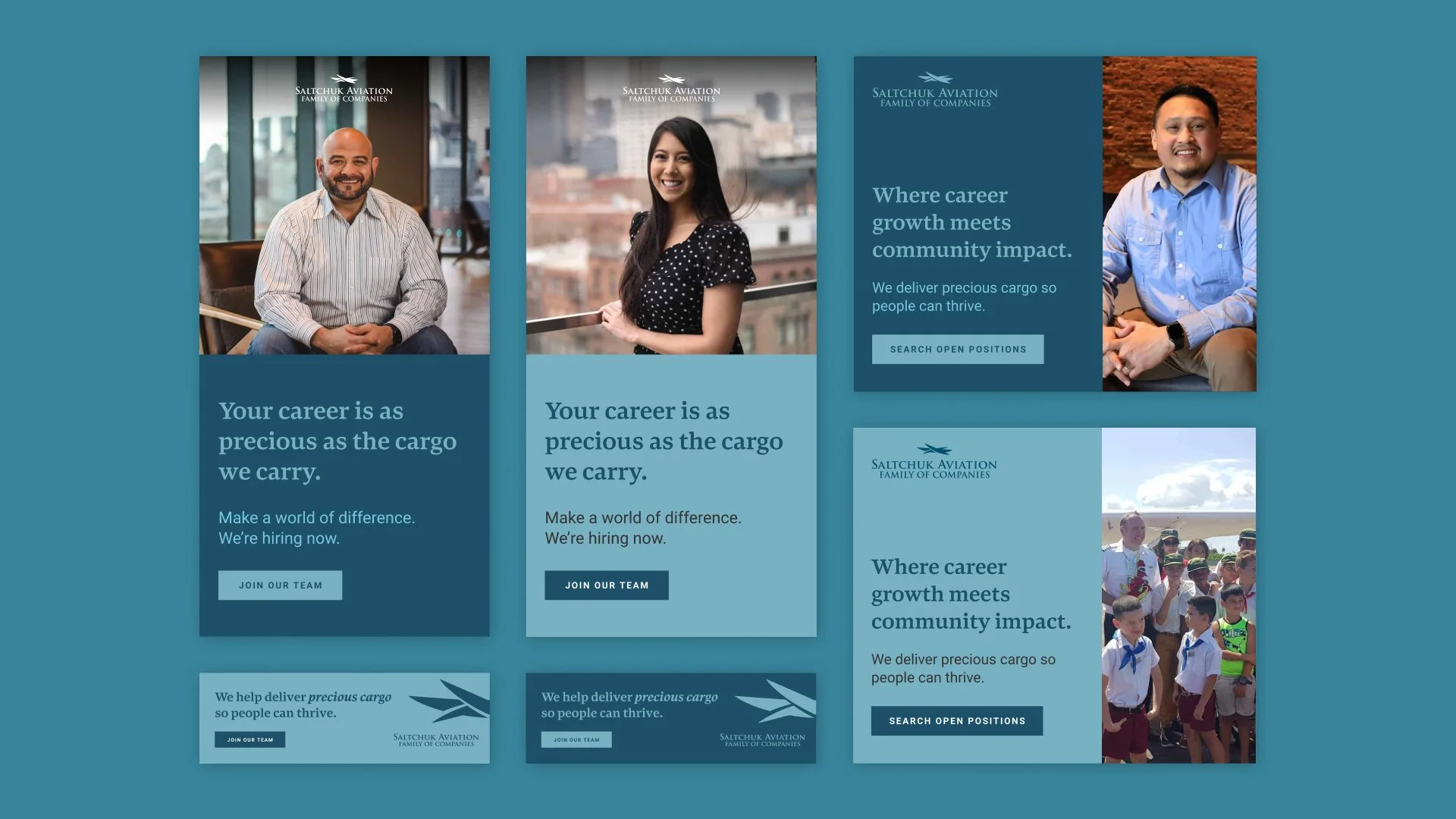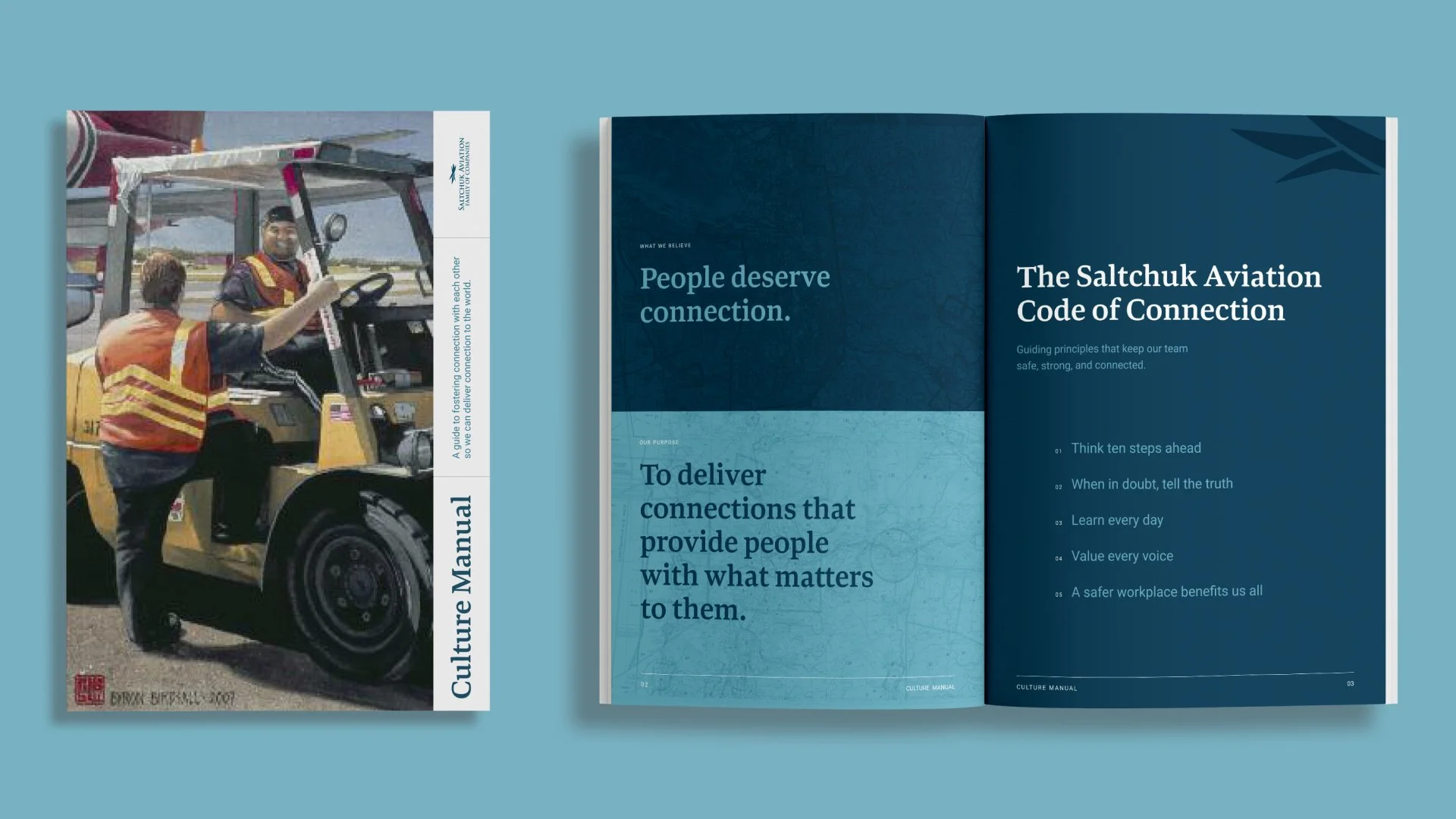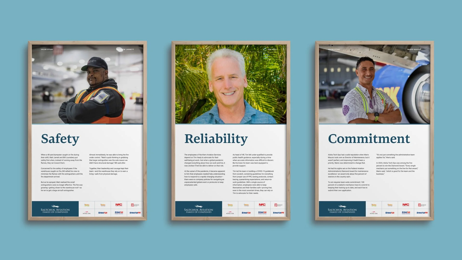 Saltchuk Aviation needed realignment and unification for internal communication amongst it’s many brands. We put together a Marketing Playbook to address their needs not only in what and how to say, but how to then visually produce that communication effectively. A lot of Marketing Playbook work is spec or conceptual, Salthuck ended up implementing many of the concepts we presented.