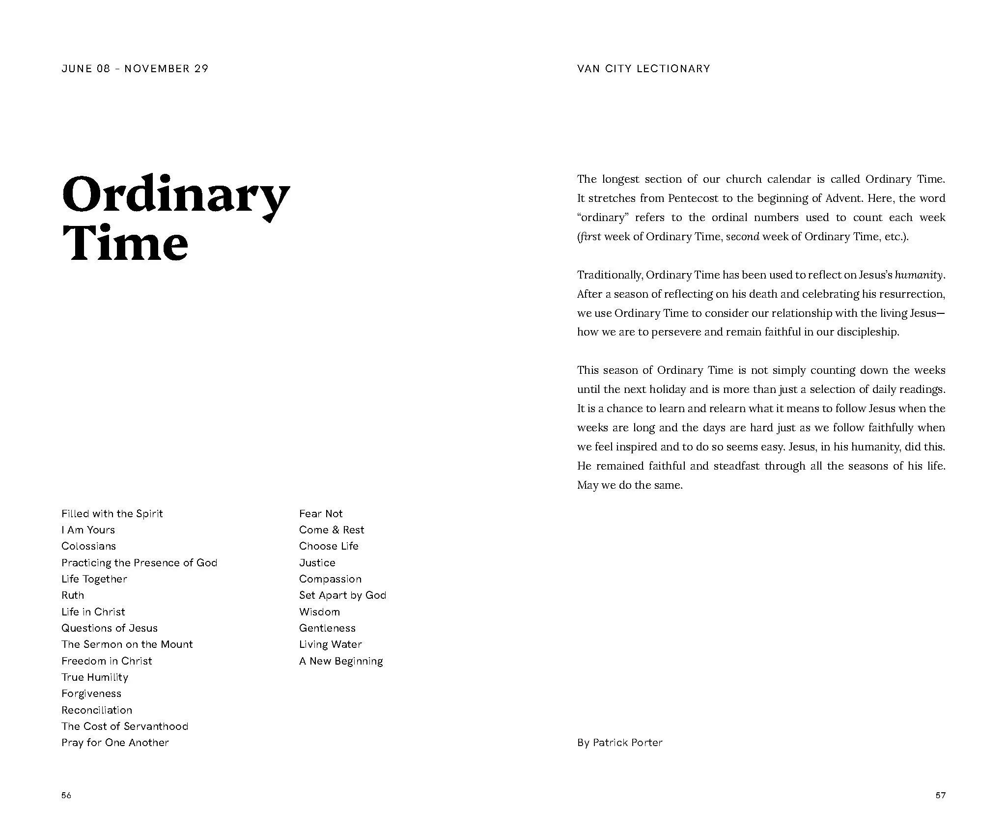 Van City—where I go to church—is moving locations and times on Sunday, Oct 5th and I’ve recently helped out with some signage, mailers, social materials, and creating a new website. Last year we put together a lectionary which I had the privilege of designing.