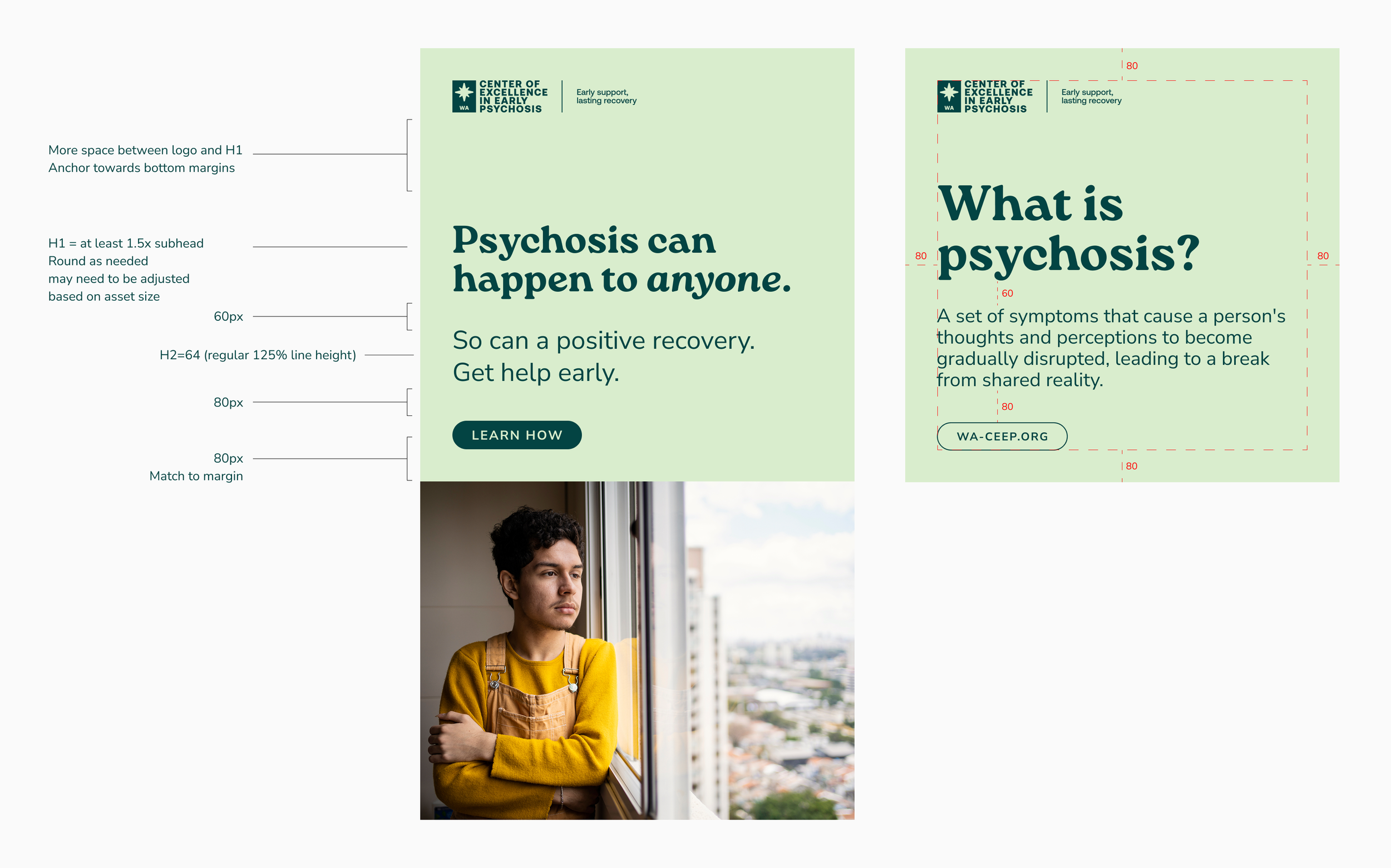 In partnership with the Central Assessment of Psychosis Service (CAPS)—the first statewide centralized assessment program for psychosis and psychosis-risk states in the country—we launched a public awareness campaign to increase understanding, reduce stigma, and guide people toward timely, evidence-based care. The goal: make it easier for patients, caregivers, and providers to recognize the signs of psychosis early and access treatment through New Journeys First Episode Psychosis teams.”